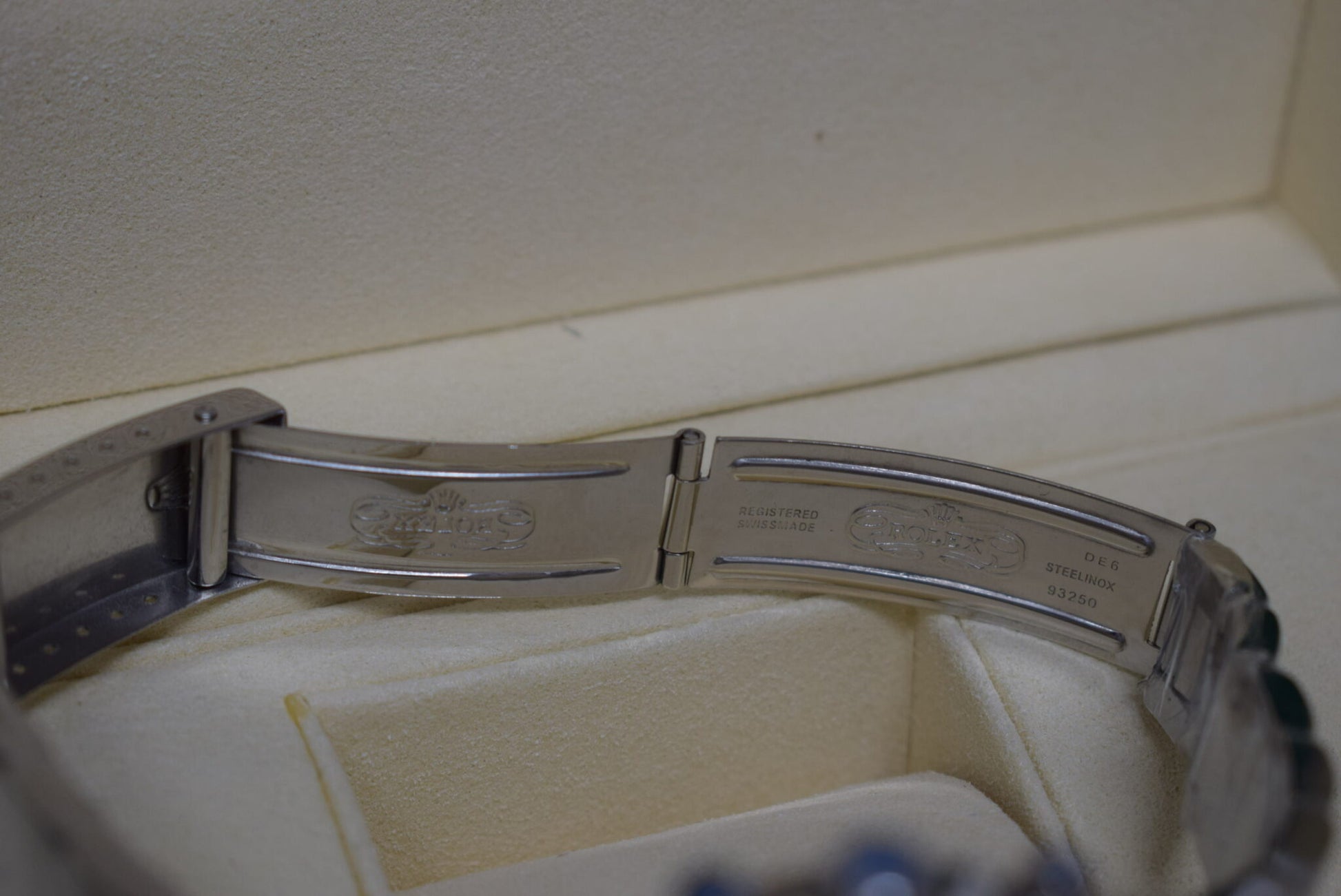• Tutti marchi correttamente riportati come in originale: su quadrante, su corona, su chiusura del bracciale e interno bracciale
